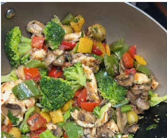 Take a pan , switch on the flame let the pan heat. Add 2 tablespoon of olive oil let it heat . Add the chopped garlic, onion and let them half cook . Now it\’s time to add in the bell peppers, capsicum and mushrooms.Add some salt & let it cook perfectly.